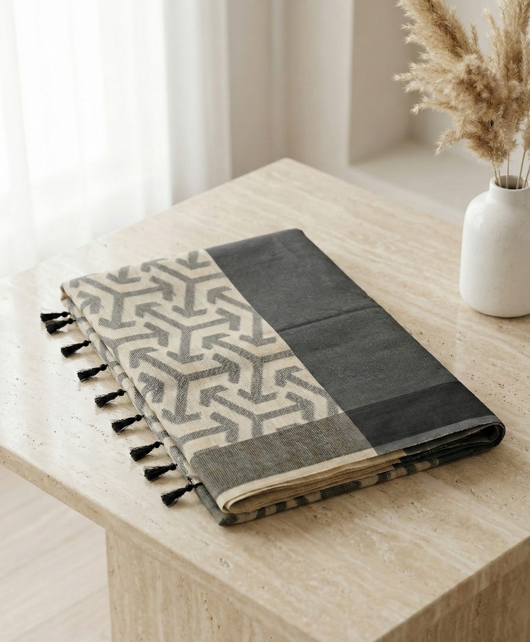 Color: Black & White geometric design, Vibrant Maroon & Off-White