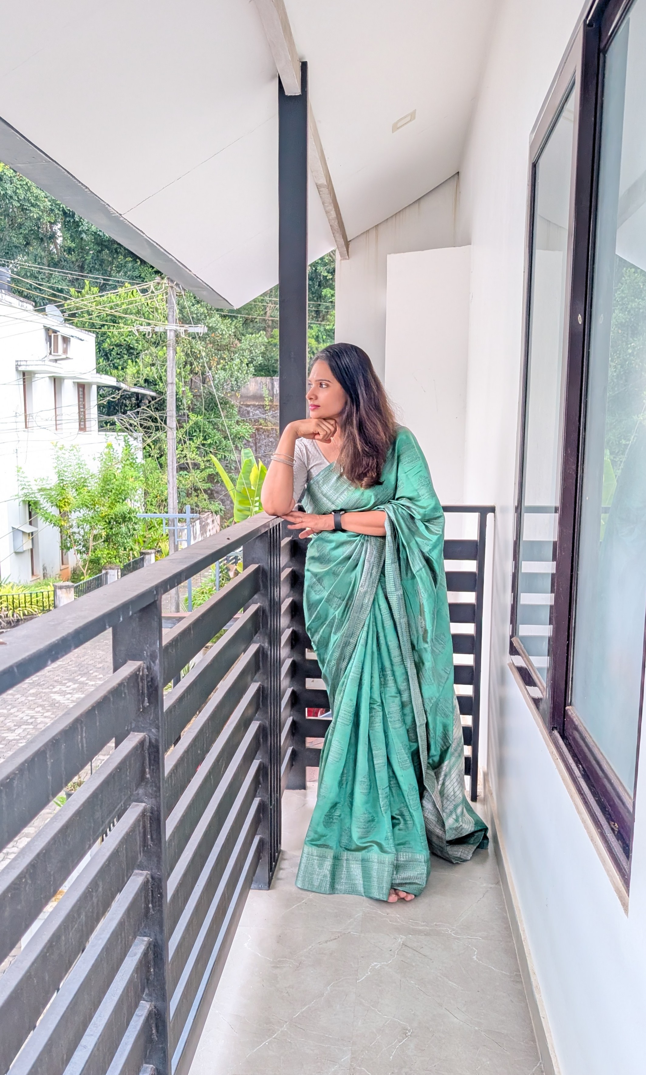• Sarees may include an unstitched blouse piece. In some designs, the blouse piece may be separate or not attached to the saree.