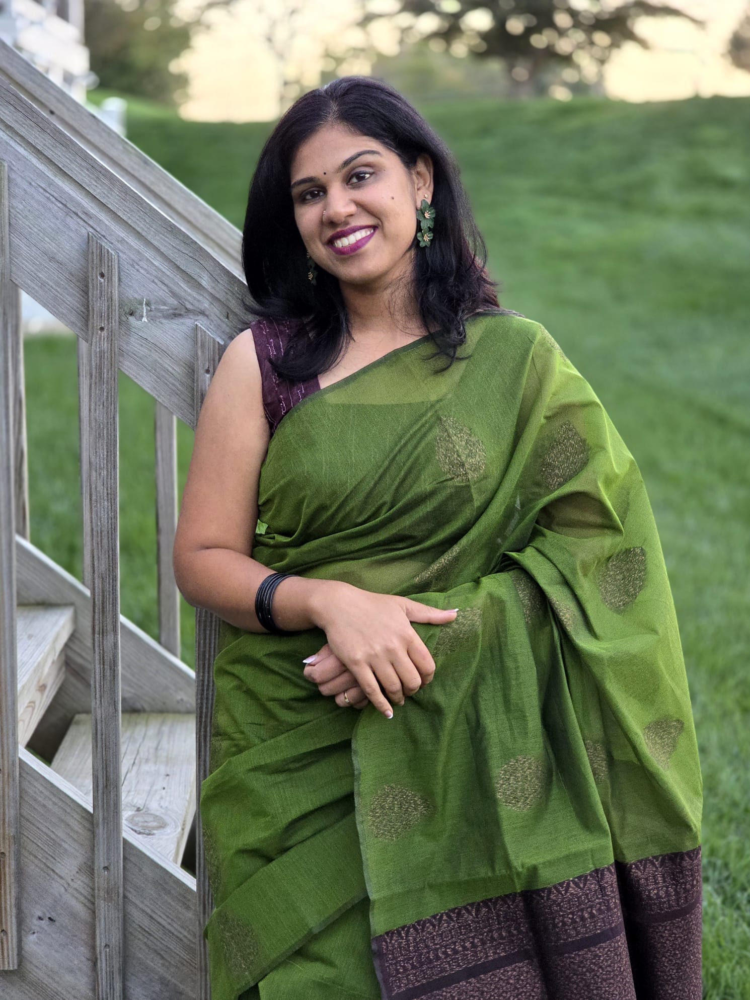 • Sarees may include an unstitched blouse piece. In some designs, the blouse piece may be separate or not attached to the saree.